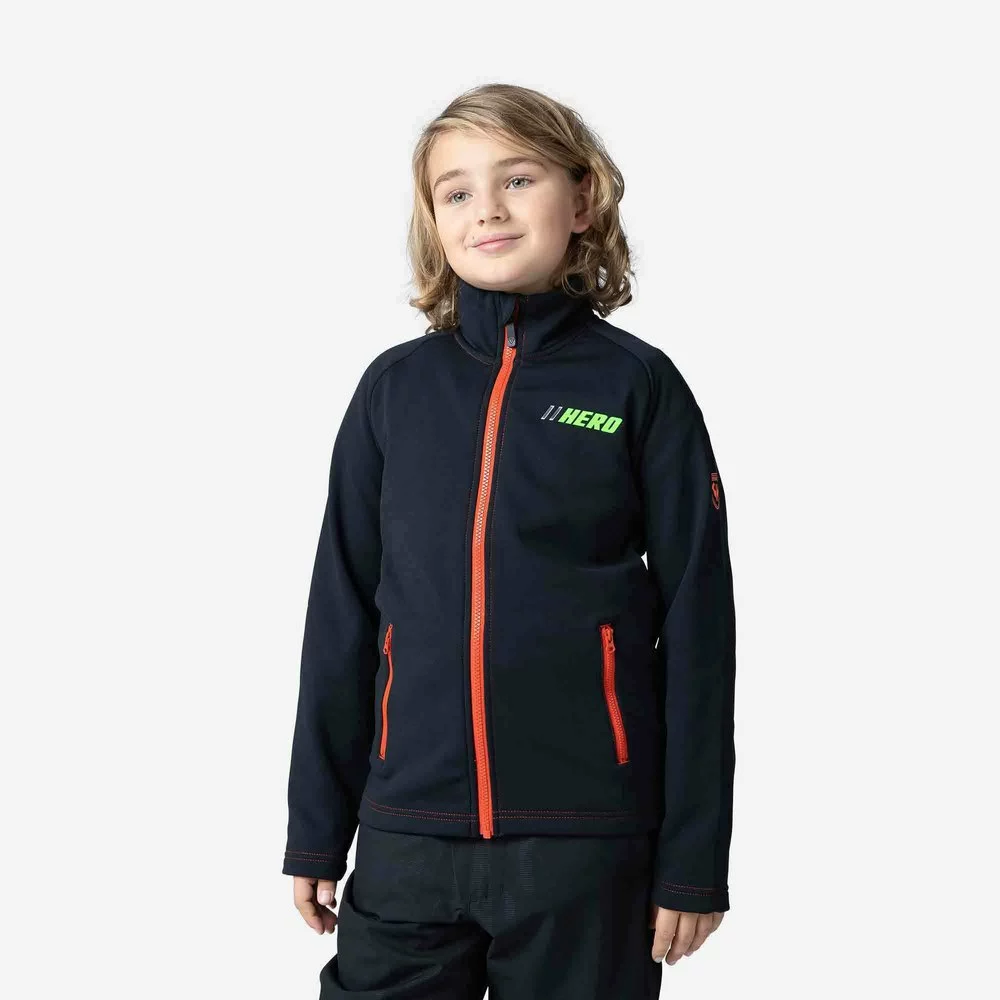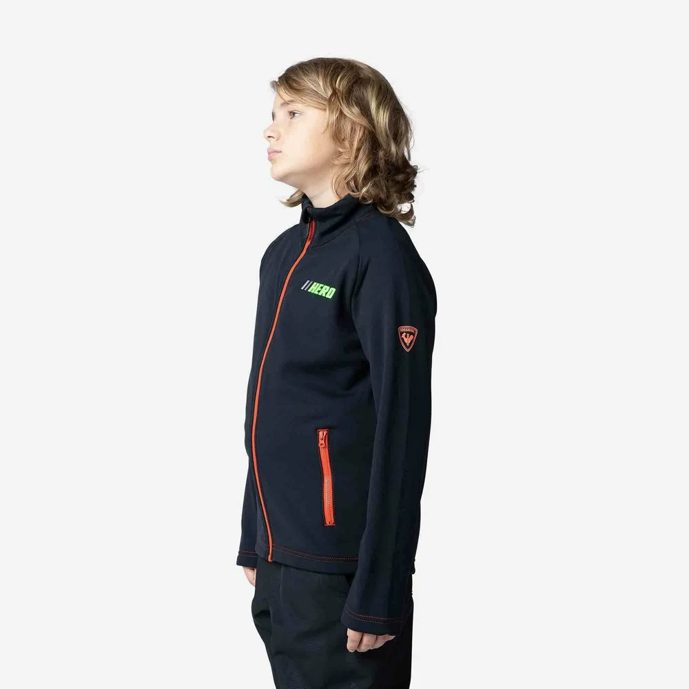 Race day or just carving around the mountain, the boys´ Rossignol Full-Zip Hero Clim Fleece Jacket layers under a ski shell for extra warmth on cold days at the mountain. It´s cut to match the body´s natural stance with a soft, stretchy build for an unrestricted feel. Details like a zipper cover at the neck and zip hand pockets give it all-around versatility as a go-to jacket for any time of year.