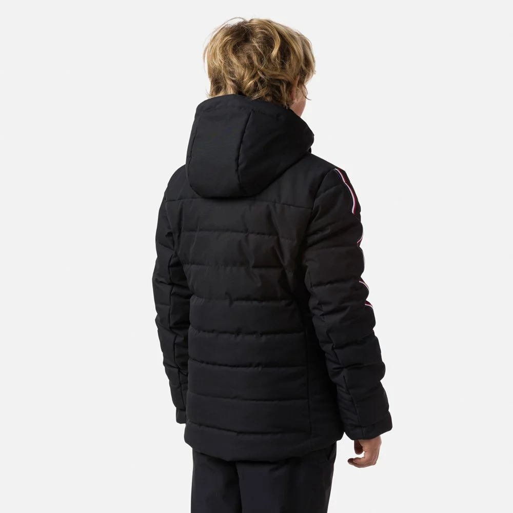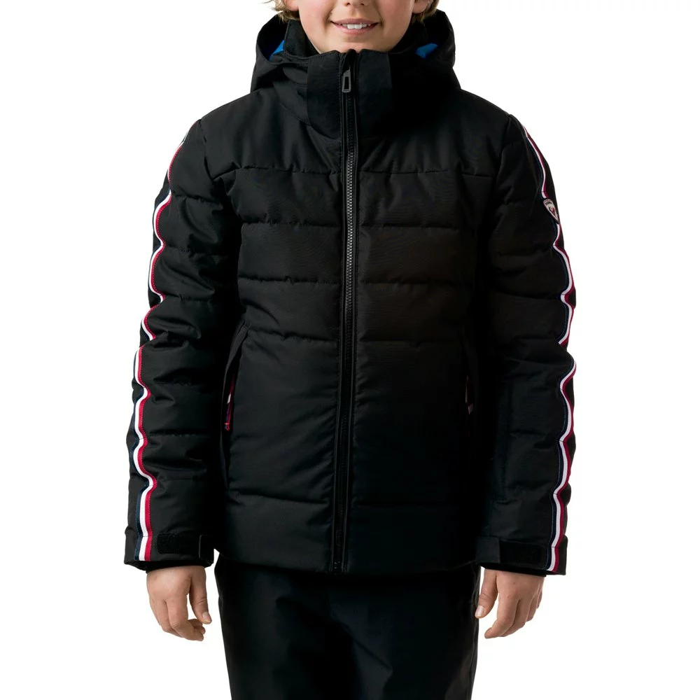 True to Rossignol heritage, the boys´ Hiver PolyDown Jacket mixes iconic tricolor details with advanced weather protection. Soft and supple, the jacket´s waterproof, breathable shell sheds wet weather for all-conditions skiing, while lightweight synthetic insulation throughout adds the warmth to ski all day. A built-in snow skirt and removable hood add extra coverage on stormy days, and a dedicated ski pass pocket makes for smooth chairlift transitions.