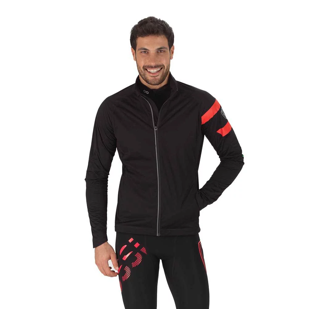 Designed for the aerobic demands of Nordic skiing, running and hiking, the men´s Rossignol Poursuite Jacket provides wind and weather protection on the trail and Nordic track. The lightweight build allows for an unrestricted range of motion while regulating your temperature and shedding sweat for quick evaporation as you stride, glide or hike. A zip back pocket stores a phone or other small essentials, and headphone loops on the collar manage cords.