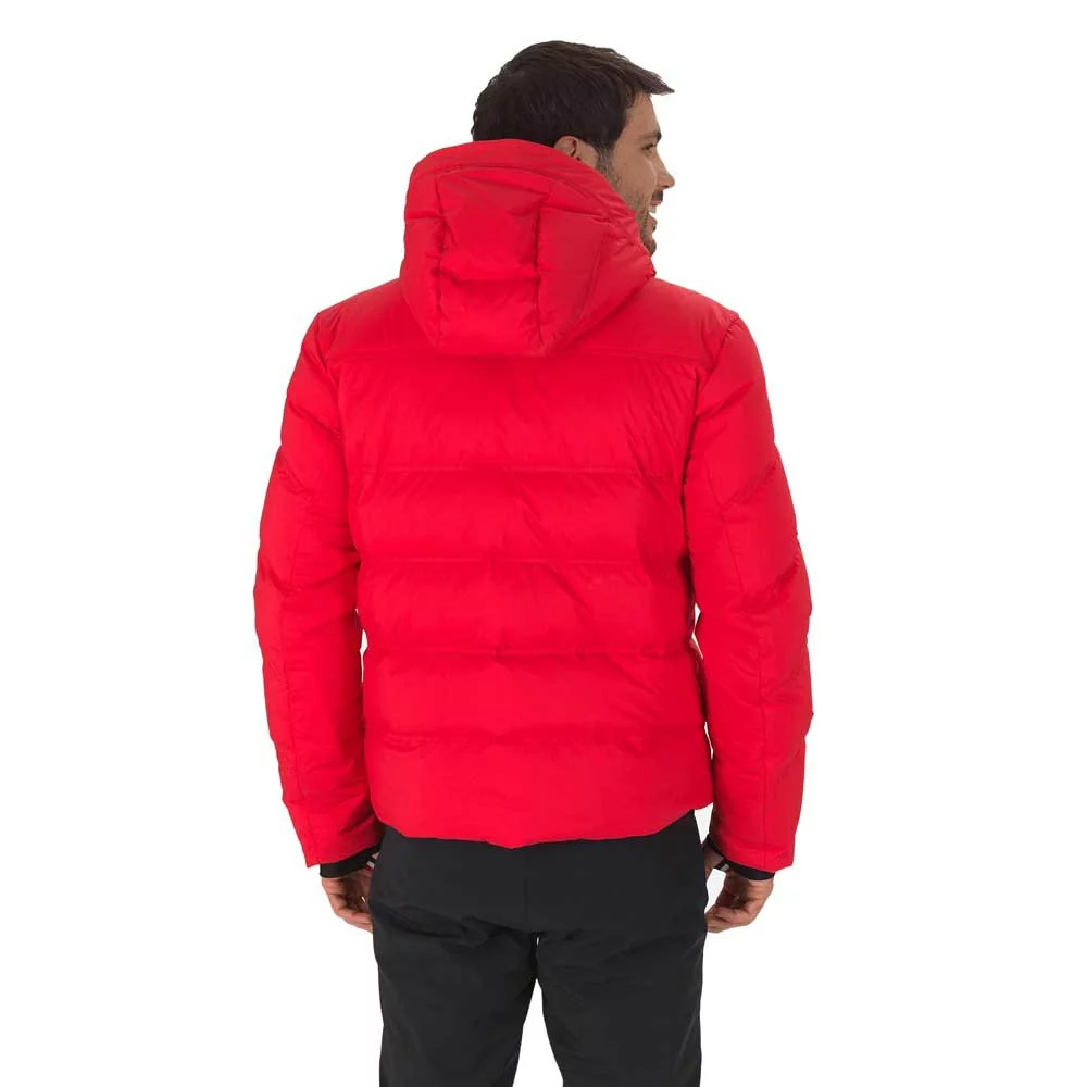 The men´s Rossignol Signature Merino Down Ski Jacket blends tricolor details with shield-shaped quilting to honor our rich alpine heritage, while performance fabrics and all-natural warmth keep you warm and dry on the mountain. Soft and supple, the jacket´s waterproof, breathable membrane sheds wet weather for all-conditions skiing, while the combination of natural down and a merino lining make it extra warm. A built-in snow skirt and removable hood add extra protection for stormy days. Skier-designed features like waterproof zippers and knit thumbhole cuffs keep you warmer and let you ski longer. A dedicated pass pocket and built-in goggle cleaner make for uninterrupted ski days.