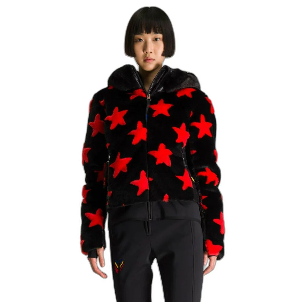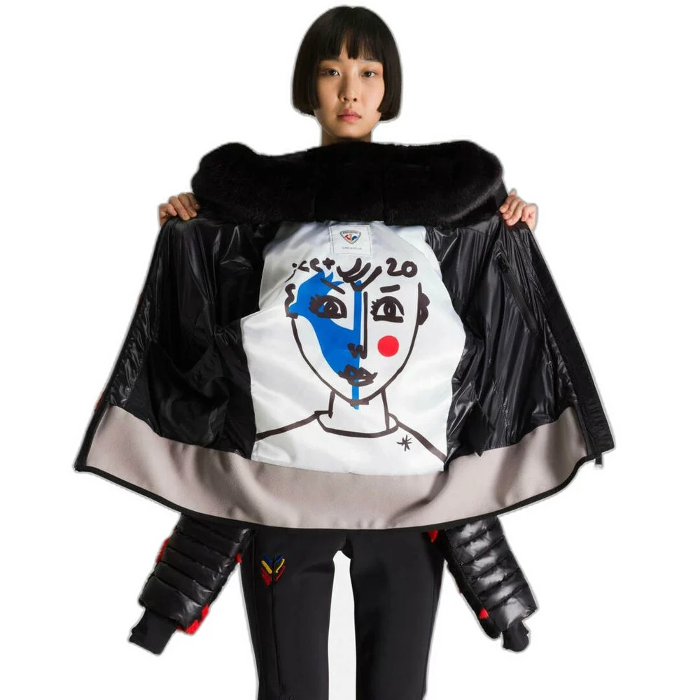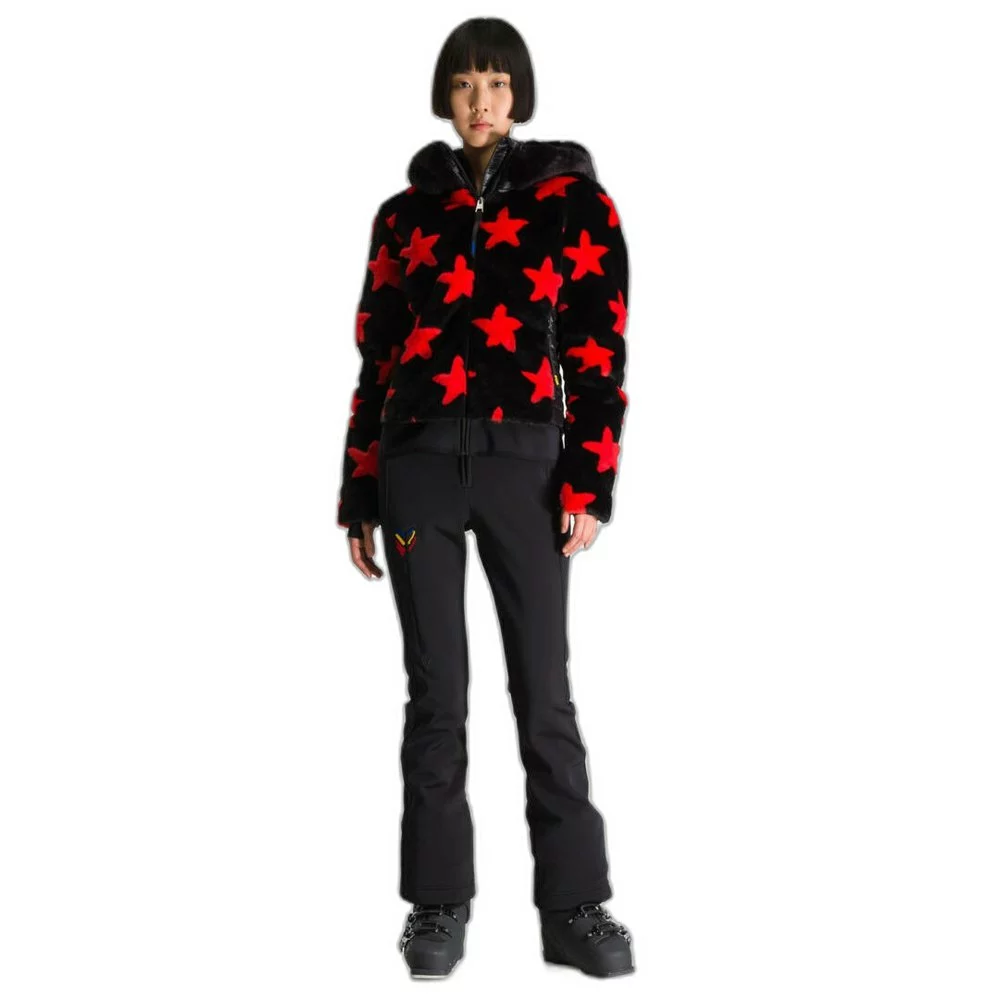Shine like a star on the slopes. After two decades of playful, refreshingly energetic designs, French fashion designer Jean-Charles de Castelbajac celebrates 20 years of collaboration with Rossignol, with the Teddy down jacket for women. With a colorful faux fur front and stylish nylon quilted back panel, this cozy, fluffy jacket is perfect for chilly days on the slopes or cool winter evenings at the resort. Water-repellent finish and insulated hood for added protection from the elements.